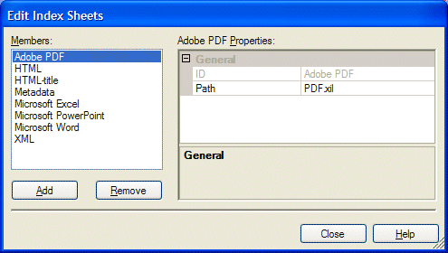 4\Builder\IndexSheets directory.To index the content in the content collection, list all needed index sheets in the dialog box that is shown in the Figure 2.