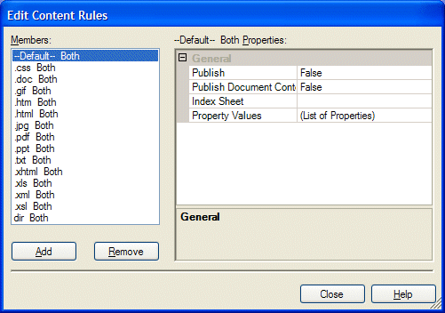 Content Rules is the property that defines the list of rules according to which content is included into the content collection. Content rules define the index sheets that process and index each type of the document and define the values that certain properties have for these documents.