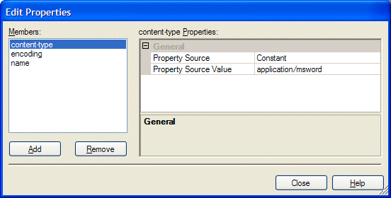 | content-type | MIME type of the source document. The default value for this property is the content-type that is consistent with the respective document type extension. See Table 2 for default content-types. |