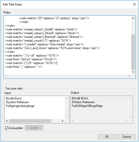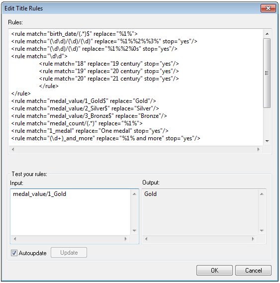 Note: The Edit Title Rules dialog has the functionality of rule testing.