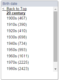 Figure 3. The view of the Date of birth facet