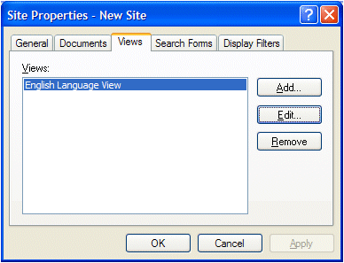 The Views tab in Figure 4 enables you to create views or windows into the content on your site. From this tab you can manage your site's views by adding new views, editing existing views, and deleting obsolete views. Views are site specific and do not cross site boundaries. Views, along with sites, provide another method for segmenting or grouping your content.